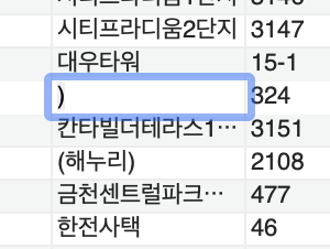 이름이 온전하지 않은 데이터가 특별한 규칙 없이 발견되었다.