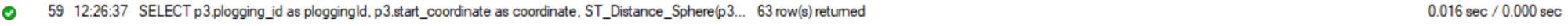 SELECT p3.plogging_id as ploggingId, p3.start_coordinate as coordinate, ST_Distance_Sphere(p3.start_coordinate, st_srid(POINT(127.036397, 37.500603), 4326))
